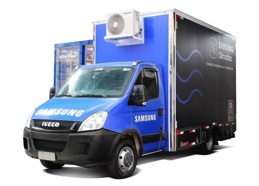Entre os produtos disponíveis na vitrine sobre rodas estão o Wind-FreeTM, mais novo lançamento da Samsung no setor de ar-condicionado, equipado com o revolucionário sistema de refrigeração sem vento*; o Cassette de 1 via; o Split Digital Inverter e o Multi Split Inverter, display com diferenciais dos compressores de 4 e 8 polos.