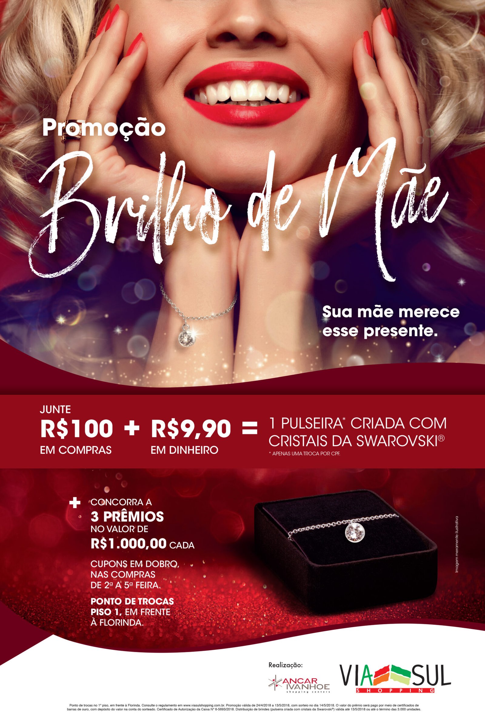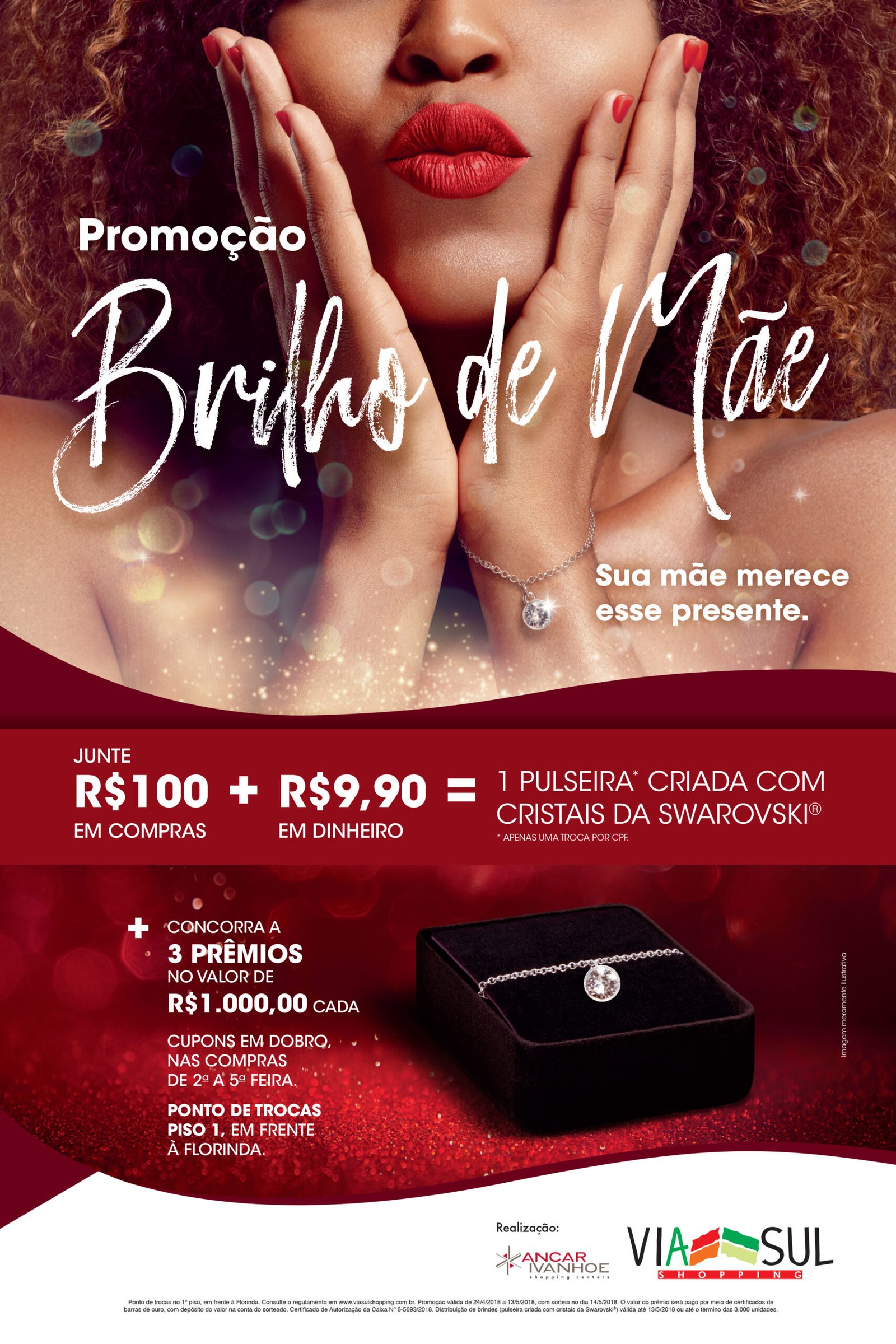 Para comemorar o Dia das Mães, celebrado no segundo domingo de maio, a Binder criou a campanha “Brilho de Mãe” para 10 shoppings da Ancar Ivanhoe, uma das cinco maiores empresas de shopping do país. A campanha promocional contemplará centros comerciais dos estados de São Paulo, Rio de Janeiro e Ceará, que entre os dias 27 de abril e 13 de maio irão oferecer uma pulseira criada com cristais da Swarovski® ao participar de uma mecânica compre-e-ganhe.