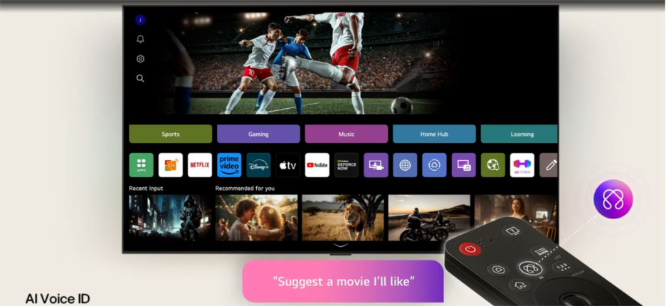 Além de todos os recursos de áudio e vídeo que proporcionam experiência imersiva, o controle remoto AI Magic proporciona ainda conforto e flexibilidade enquanto o expectador assiste a partida. “O controle conta com um sensor de movimento e uma roda de rolagem, que permite a utilização como um mouse aéreo ou, simplesmente por comandos de voz, graças ao LG AI Voice ID, que reconhece a assinatura de voz única de cada usuário”, complementa.
