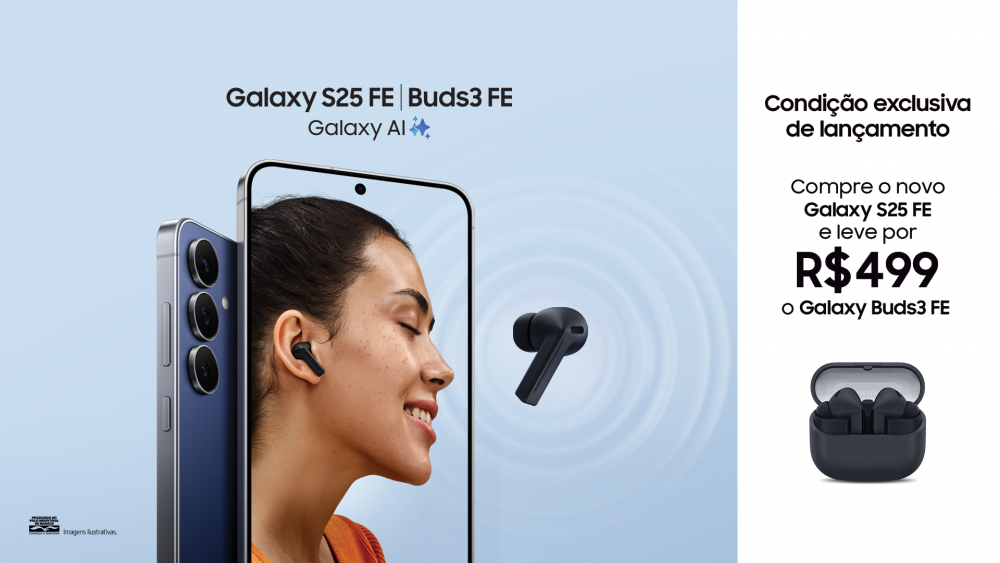 A Samsung oferece uma condição exclusiva para o lançamento do Galaxy S25 FE. Ao comprar o mais novo integrante da família S25, você pode adquirir o novo fone de ouvido sem fio Galaxy Buds3 FE por R$ 49925. Confira o regulamento aqui.Imagem meramente ilustrativa