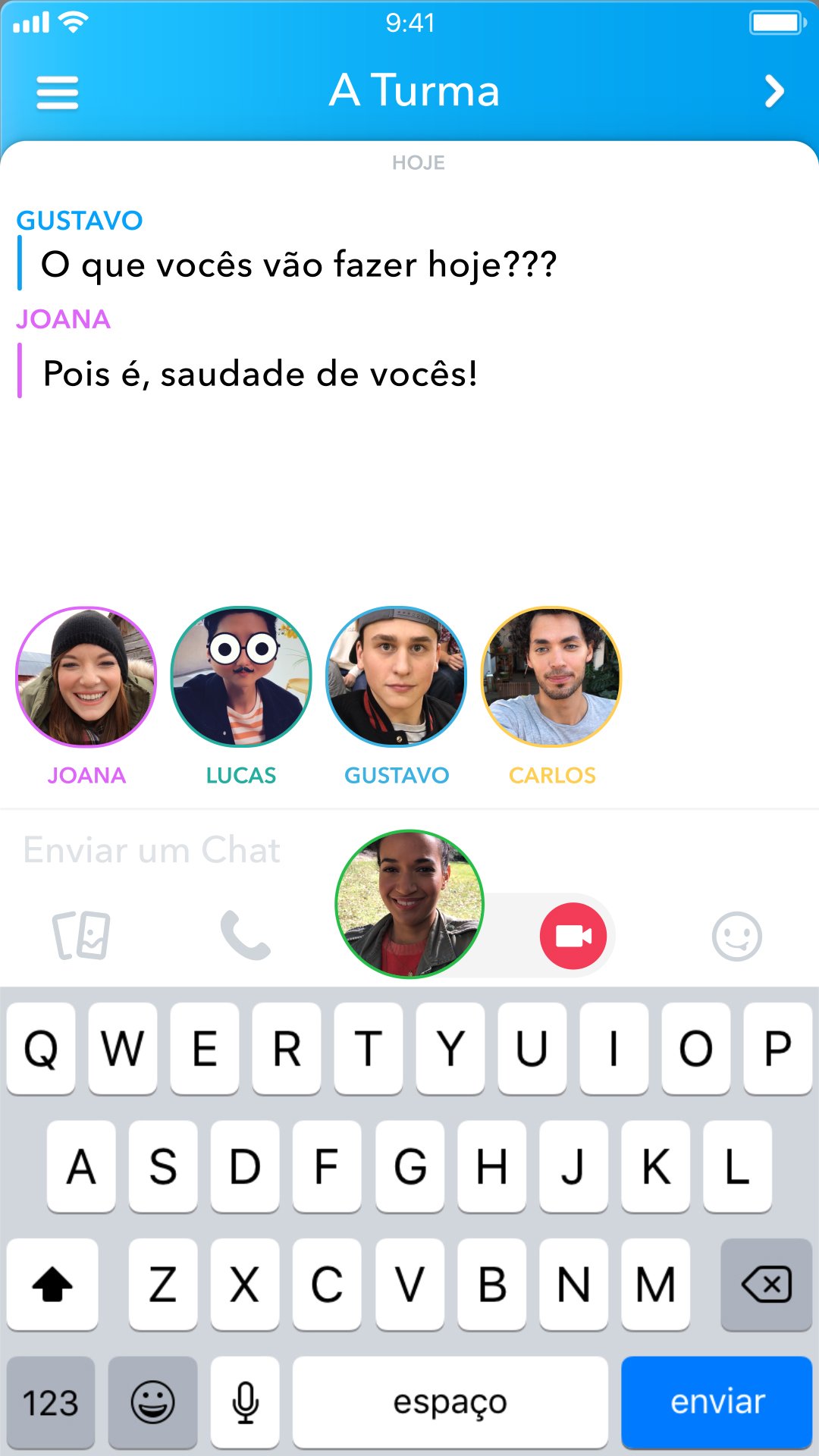 Nossa comunidade está fazendo milhões de ligações no Snapchat todos os dias. Estamos animados com esta expansão das chamadas e por dar aos Snapchatters a oportunidade de transformar qualquer Chat em Grupo em uma videoconferência ao vivo, para aquelas ocasiões em que Snaps e Chats simplesmente não bastam. 🙂